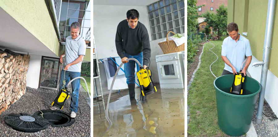 - Оперативное устранение потопа. Дренажные насосы Karcher – уникальное решение в борьбе с большим количеством воды после дождя. Такая техника быстро откачает воду из погреба, дренажного колодца или котлована. Причем, откачать ее можно в бочку, чтобы затем использовать для полива.